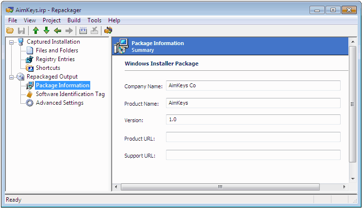 You can simultaneously build an InstallShield Editor project (.ism) and a Windows Installer package (.msi) from your Repackager project (.irp). However, before you do so, you must configure options in your Repackager project necessary for the build.