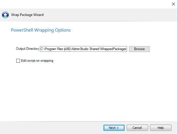 - Specify the Output Directory , the location where the PowerShell-wrapped package will be stored.