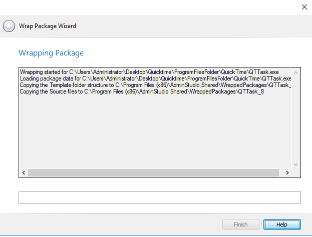 - Click Next . The Wrapping Package panel opens and wrapping is initiated. When the process is complete, confirmation messages are listed.