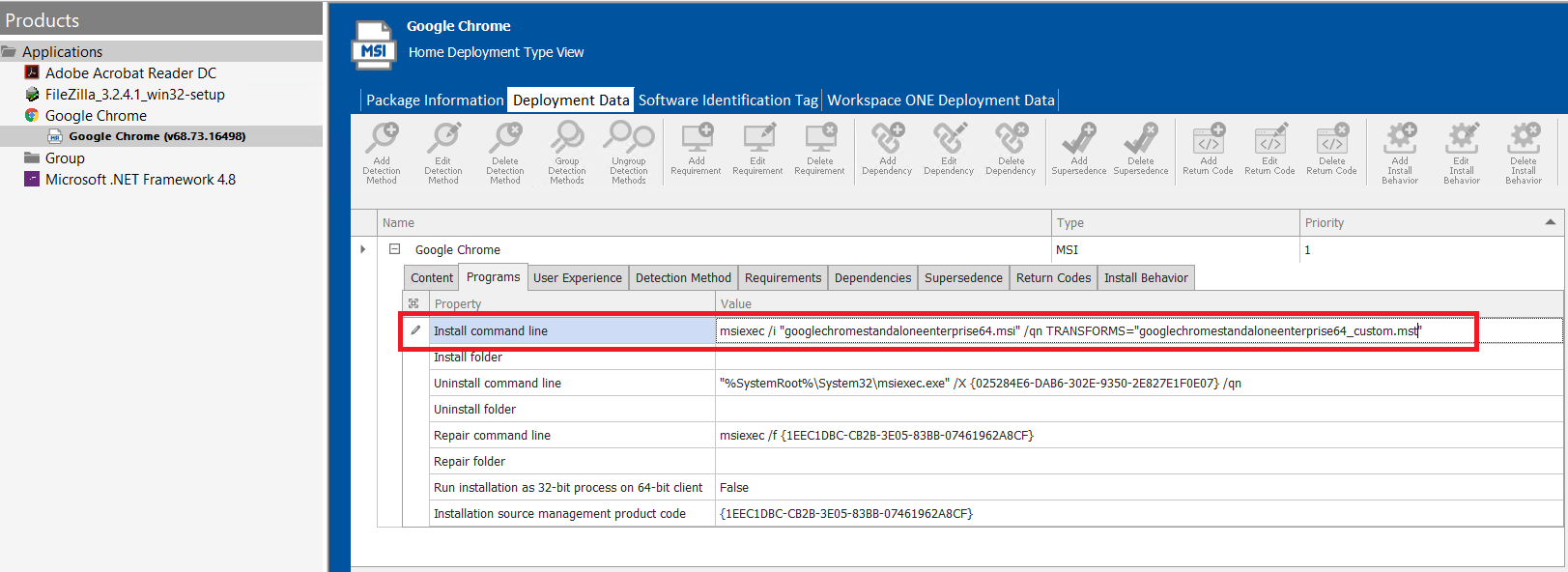 - If package can be customized then Create transform file mst file with additional custom installation options will be enabled and checked by default if deployment type is msi.