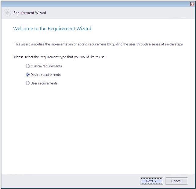 Device requirementsSelect this option if you want to define a device requirement (such as CPU speed, free disk space, operating system, etc.) that the target system needs to be meet in order for ConfigMgr (Formerly called as System Center Configuration Manager) to be able to successfully deploy this package.