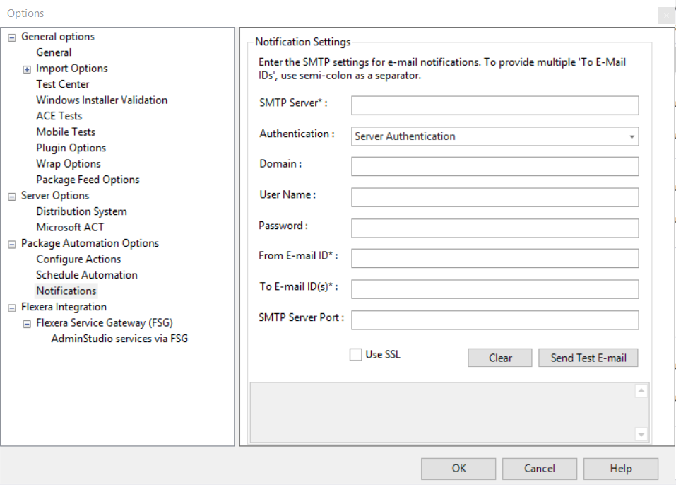 - Under Package Automation Options , select Notifications . The Notification Settings tab opens.