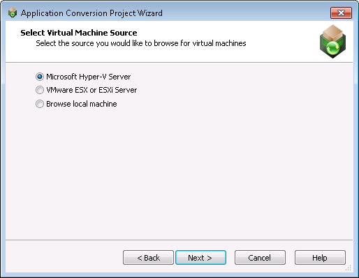 | Microsoft Hyper-V Server | Select this option to connect to a Microsoft Hyper-V Server. You will then be prompted for login information on the Select Virtual Machines from a Microsoft Hyper-V Server panel. |