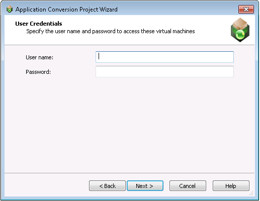 - Click Next . The User Credentials panel opens, prompting you to specify the login credentials to use to access the selected virtual machines.